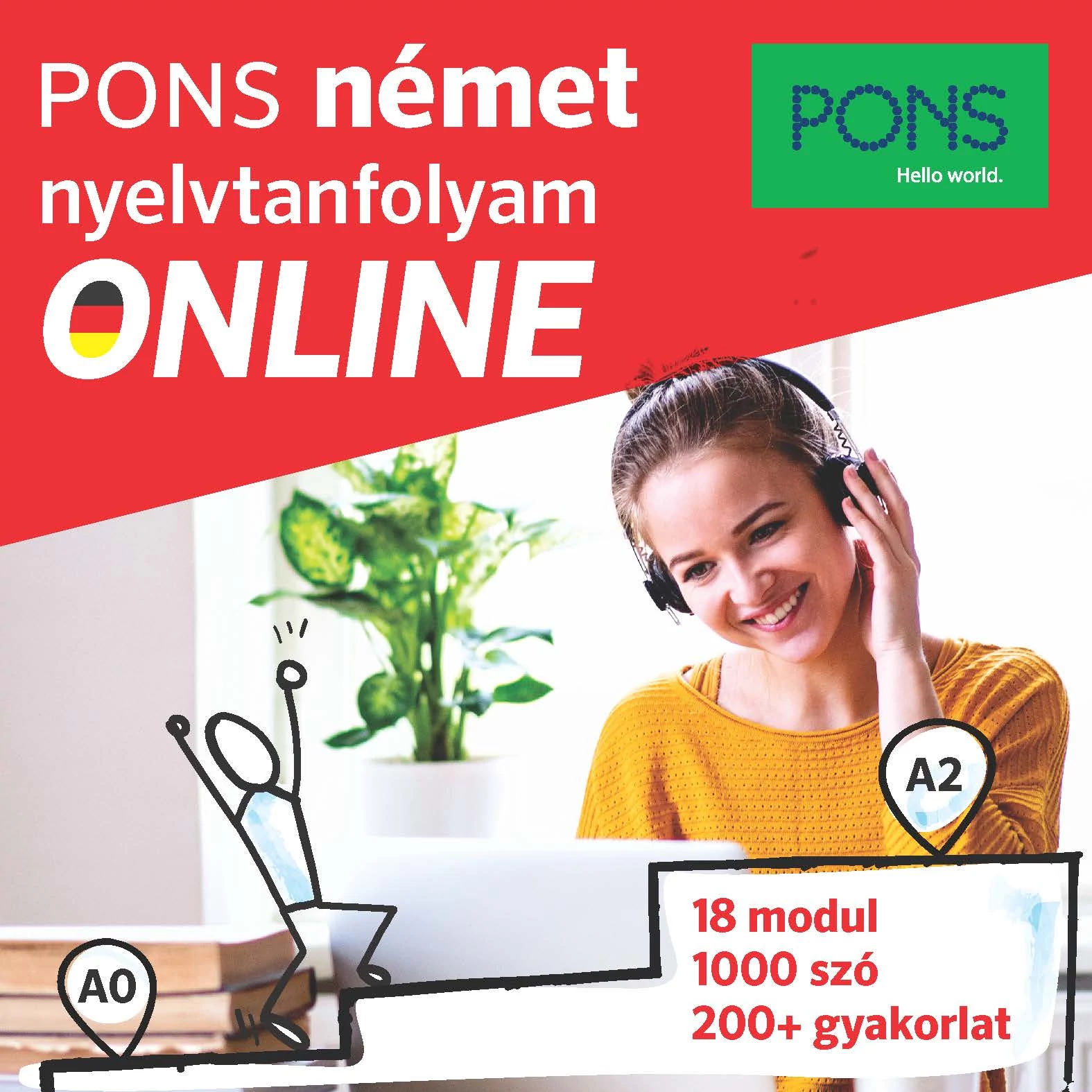 A PONS könyvmárka védjegyének számító „Nyelvek könnyedén”-mottót új dimenzióba helyeztük, ezért a digitális nyelvtanulás irányába indultunk el. A frissen piacra dobott PONS Német Nyelvtanfolyam Online alapja a korábban már nagy sikerrel alkalmazott vizuális módszer, mivel továbbra is hiszünk abban, hogy 1 kép többet mond 1000 szónál. Kihasználva a virtuális tér előnyeit online német nyelvtanfolyamunkkal messze túlmutatunk a nyomtatott könyv határain, ezért a klasszikus szókincsfejlesztő és nyelvtani egységek mellett autentikus német párbeszédekkel, élőnyelvi német hanganyagokkal, dinamikus szintfelmérő tesztekkel és több mint 200 interaktív gyakorlattal támogatjuk a kezdő német nyelvtanulók (A1) fejlődését.